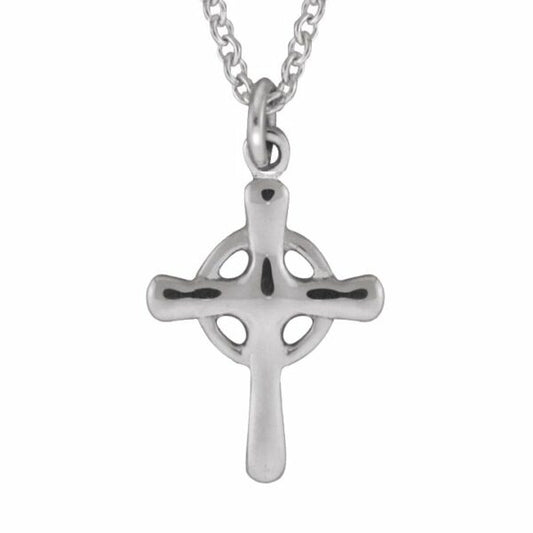 Sterling silver embossed Celtic cross necklace featuring traditional Celtic knot design. Measuring 15 mm high...
