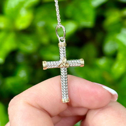 About this Piece Sterling silver Celtic cross with gold plate trinity knot detail. This beautiful...