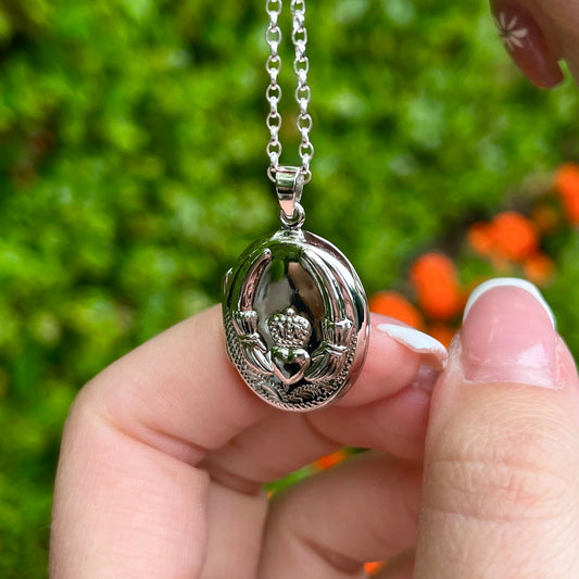 Silver Claddagh Locket Necklace