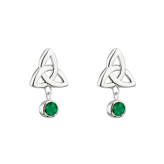 Sterling Silver Green Crystal Trinity Knot Drop Earrings