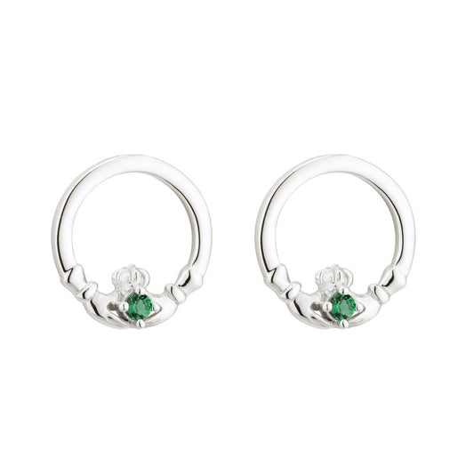 Sterling Silver Green Crystal Claddagh Stud Earrings