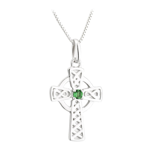 Sterling Silver Green Crystal Trinity Knot Celtic Cross