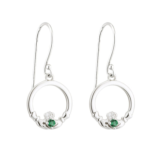 Sterling Silver Green Crystal Claddagh Drop Earrings