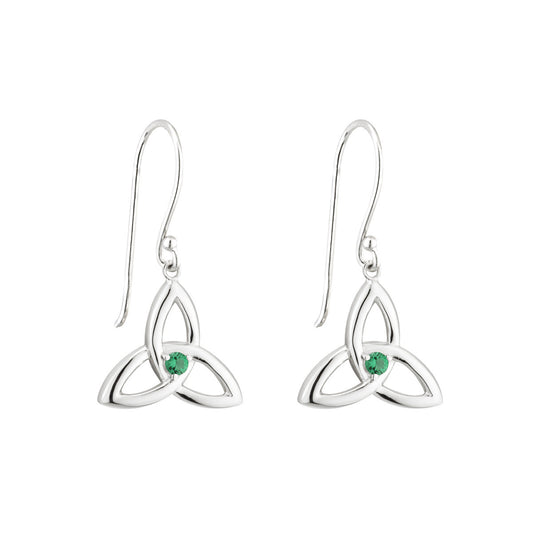Sterling Silver Dangle Green Crystal Trinity Knot Earrings