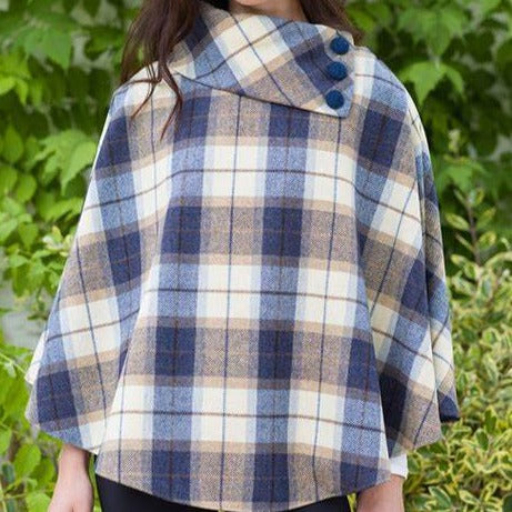 Mucros Tweed Poncho - Brown & Blue This classic style Poncho is beautifully crafted from...