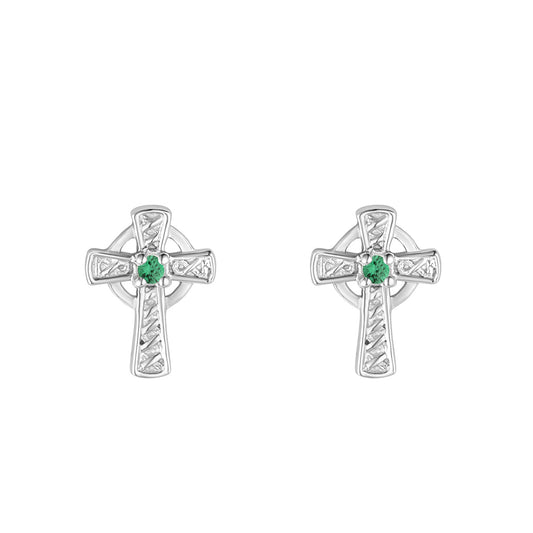 Sterling Silver Green Crystal Claddagh Stud Earrings