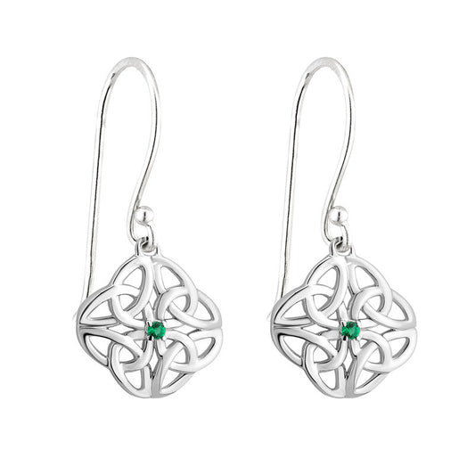 Sterling Silver Dangle Green Crystal Trinity Knot Earrings