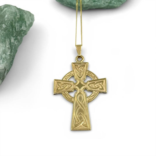 About this piece This large Celtic Cross pendant features an engraved Celtic knot pattern (front...