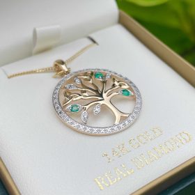 14K Gold Diamond and Emerald Tree of Life Pendant