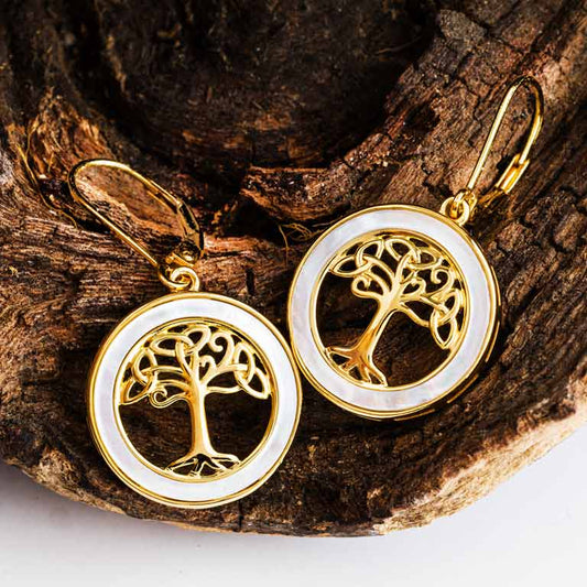 14KT Gold Vermeil Mother of Pearl Celtic Tree of Life Earrings