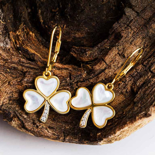 14KT Gold Vermeil Mother of Pearl Irish Shamrock Earrings
