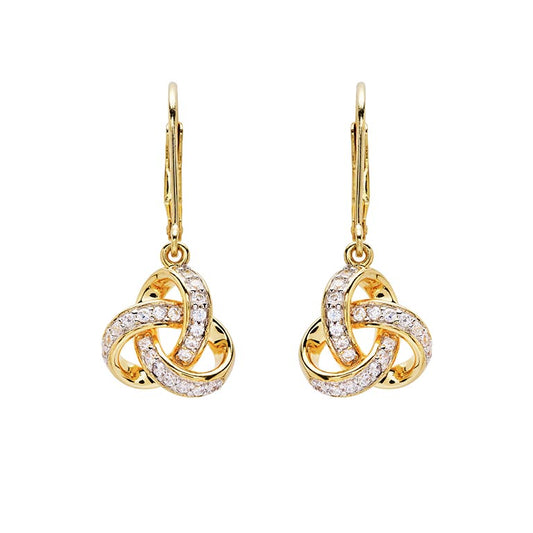 14KT Gold Vermeil Drop Trinity Knot Earrings Studded with White Cubic Zirconias