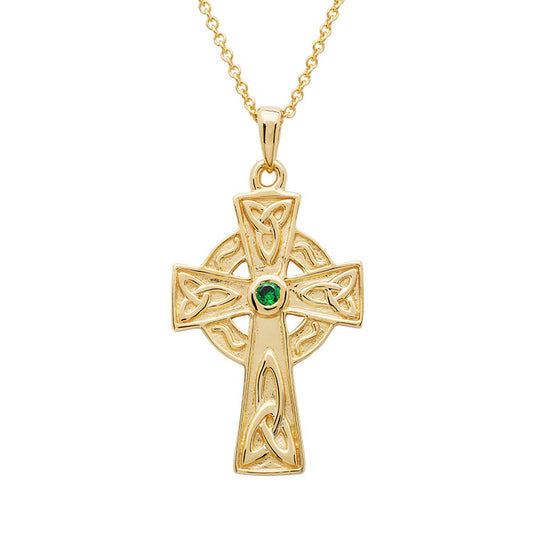 14KT Gold Vermeil Emerald Celtic Cross Necklace