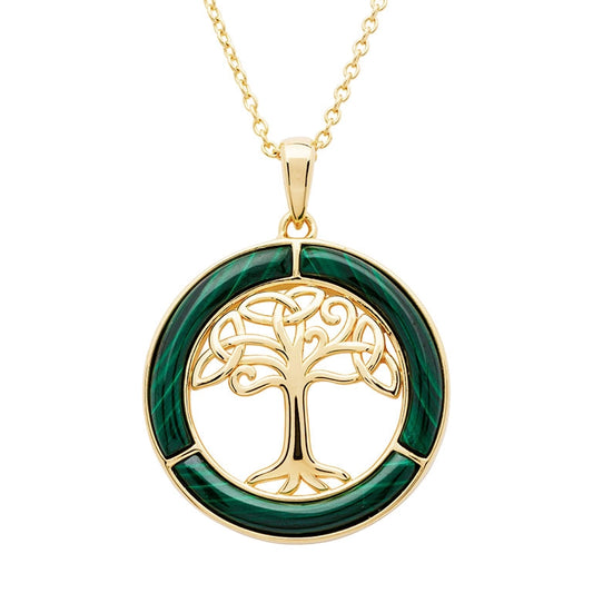 14KT Gold Vermeil Malachite Celtic Tree of Life Pendant