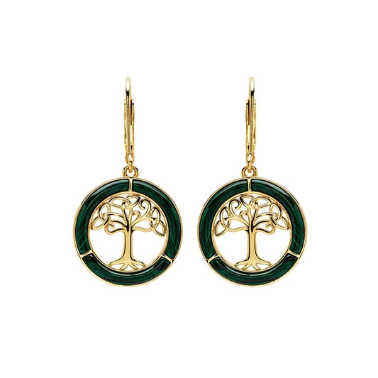 14KT Gold Vermeil Drop Malachite Celtic Tree of Life Earrings