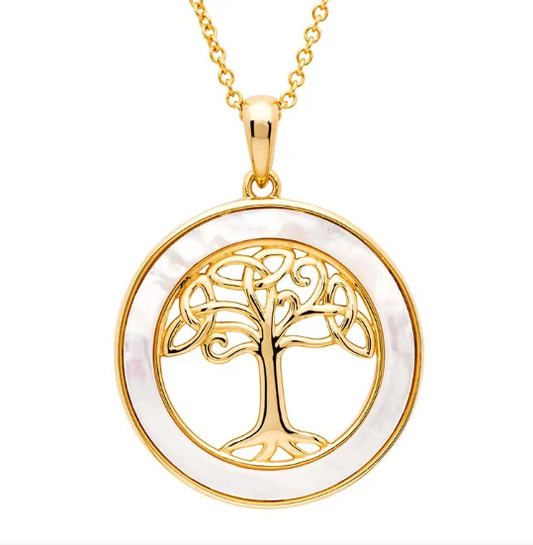 14KT Gold Vermeil Mother of Pearl Celtic Tree of Life Necklace