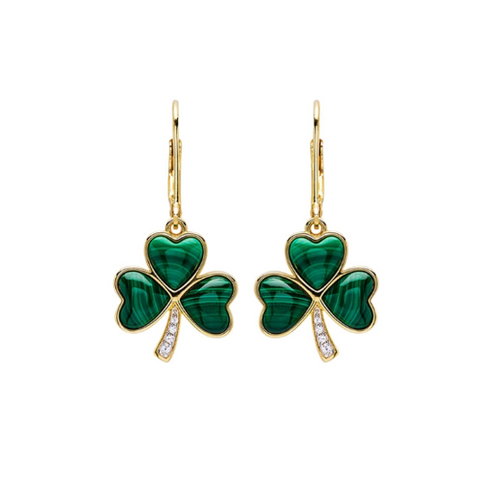 14KT Gold Vermeil Drop Malachite Shamrock Earrings
