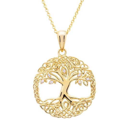 14KT Gold Vermeil Celtic Tree of Life Necklace Embellished With Cubic Zirconias