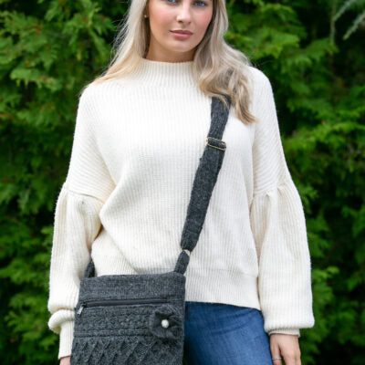 Aran Trellis Pattern Crossbody Bag Charcoal