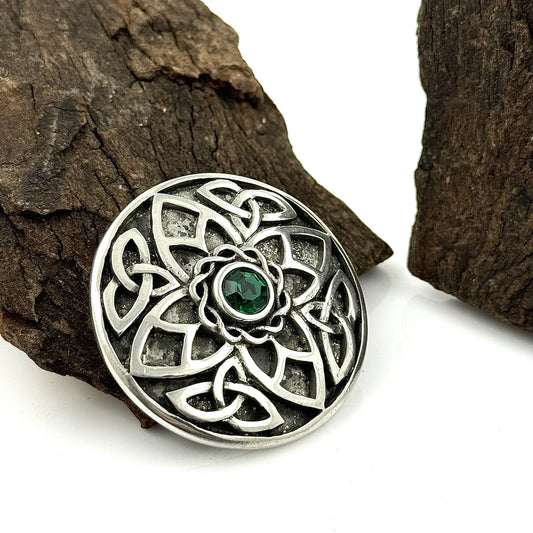 Celtic Brooch with Emerald Center (Round) Discover the timeless elegance of our handcrafted Irish Brooch,...