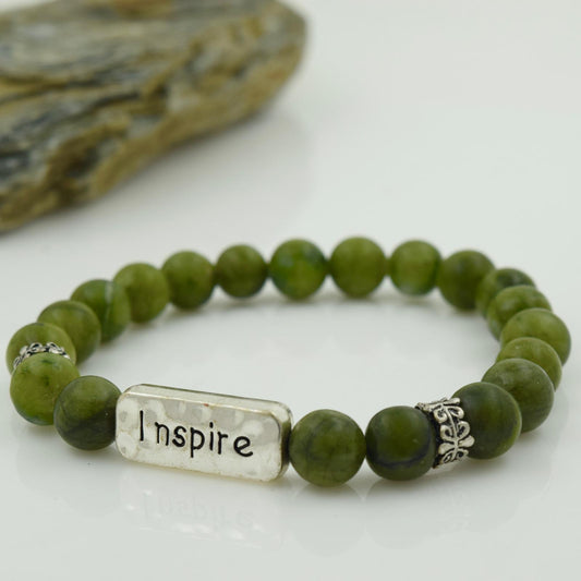 Ignite your inner spark with our Connemara Marble watermelon stretch bracelet. The lush green tones...