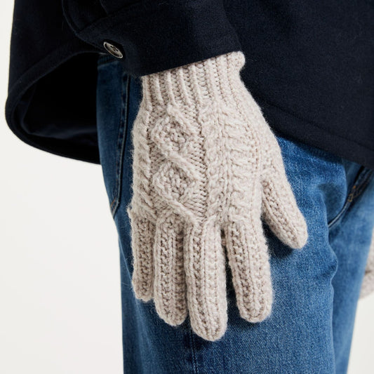 These luxurious gloves feature the traditional Aran diamond stitch filled with moss stitch, framed by...