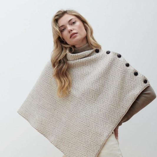 Ladies Natural/Oat Herringbone Poncho Innovative, multi-functional, and, sustainably crafted. Sustainability is at the heart of...