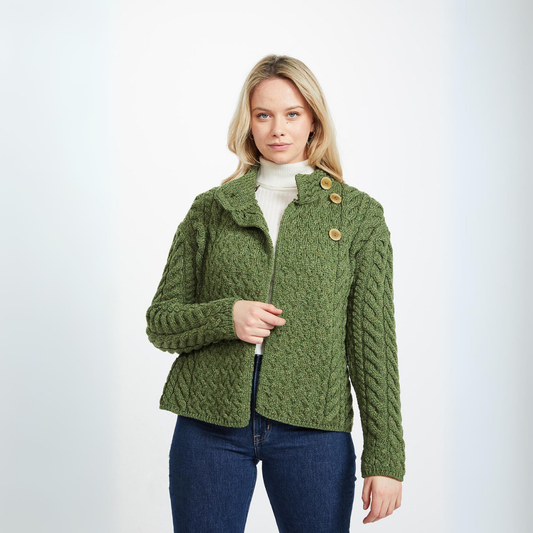 Ladies Aran Cardigan with Full Zip