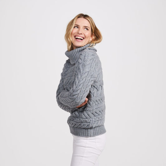 Derreen Grey Aran Horizontal Cable Sweater Feel the soft warmth of Ireland with the Derreen. ...