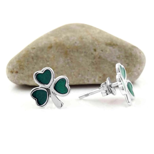 Sterling Silver Enamel Shamrock Stud Earrings