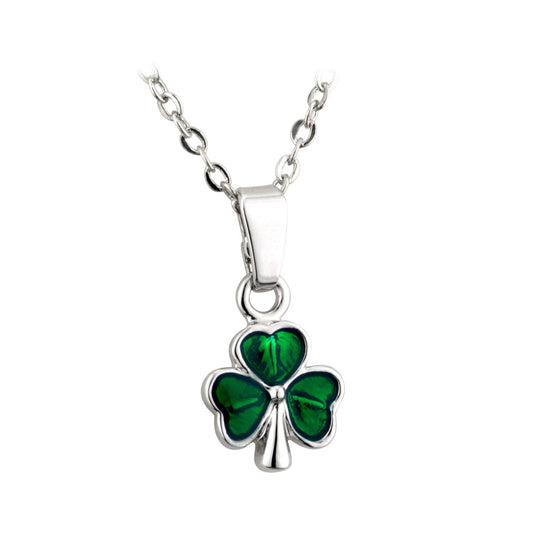 Rhodium Plated Enamel Shamrock Pendant