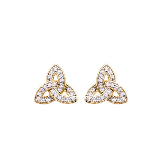 These Shanore Gold Vermeil Stud Trinity Knot Earrings are a sparkling piece of jewelry depicting...