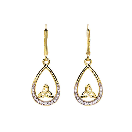 These Shanore 14KT Gold Vermeil Tear Drop Celtic Trinity Knot Earrings is Studded with White...