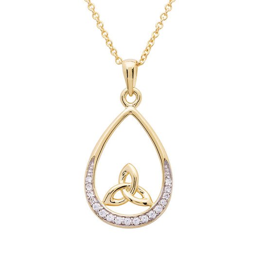 14KT Gold Vermeil Tear Drop Trinity Knot Pendant Studded With Cubic Zirconias
