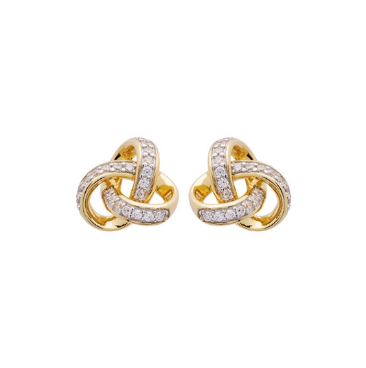 14KT Gold Vermeil Stud Trinity Knot Earrings Adorned with White Cubic Zirconias
