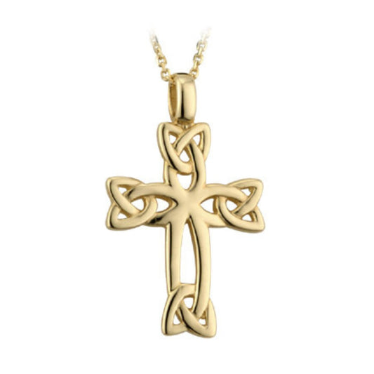 18k Gold Coated Large Celtic Cross Necklace With Trinity Knot
