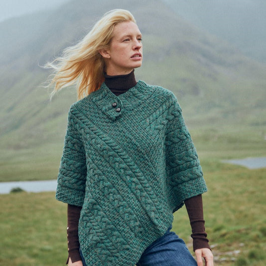 Easkey Ladies Classic Aran Button Poncho Embrace timeless elegance and modern versatility with the Easkey...