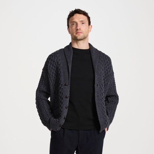 Carlingford Mens Charcoal Shawl Neck Cardigan The Carlingford Men's Shawl Neck Aran Cardigan is the...