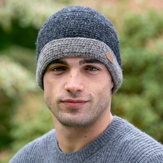Crochet Turn Up Hat in Charcoal 100% Wool with Polyester fleece lining for extra warmth...