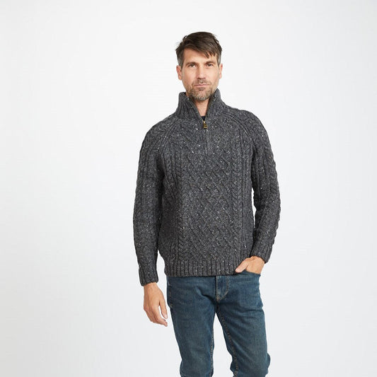 Brannock Men's Charcoal Aran Zipper Cardigan