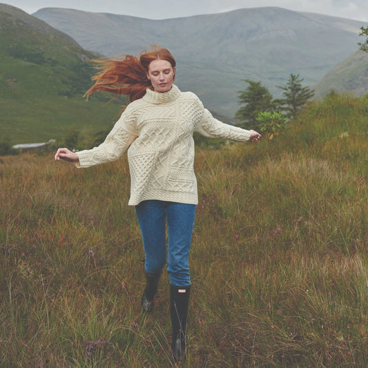 Skellig Ladies Oversized Aran Sweater The Skellig Oversized Aran Sweater captures the birdseye view of...