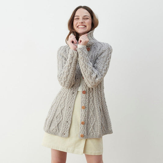 Kinsale Ladies Cable Light Grey Aran Sweater