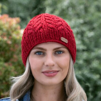 Aran Trellis Design Pullon Hat Red
