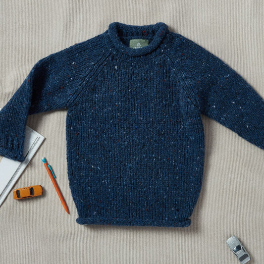 Brackloon Óg Children's Roll Neck Raglan Crew - Navy Blue Earthy textures and gentle comfort. ...