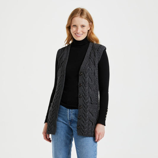 Saoirse Charcoal Aran Supersoft Gilet The name Saoirse means freedom in Irish, and that’s exactly...