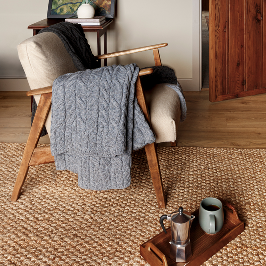 Farraige Merino Aran Throw - Denim Embrace timeless nautical charm with our luxurious Farraige Aran...