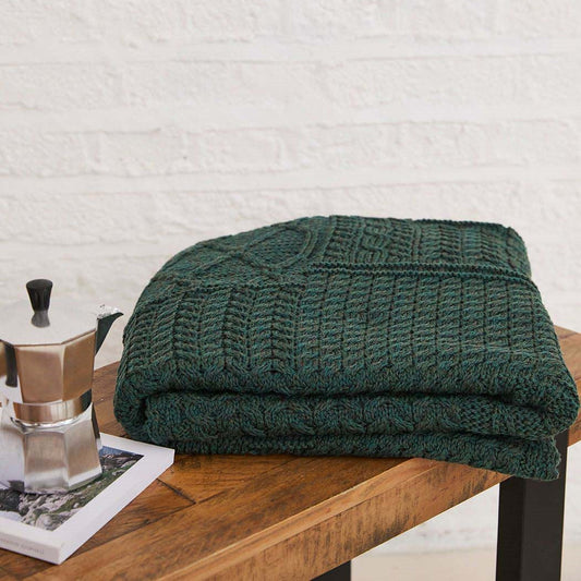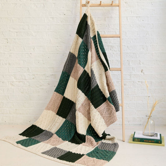 Keel Aran Patchwork Merino Blanket - Bottle Green