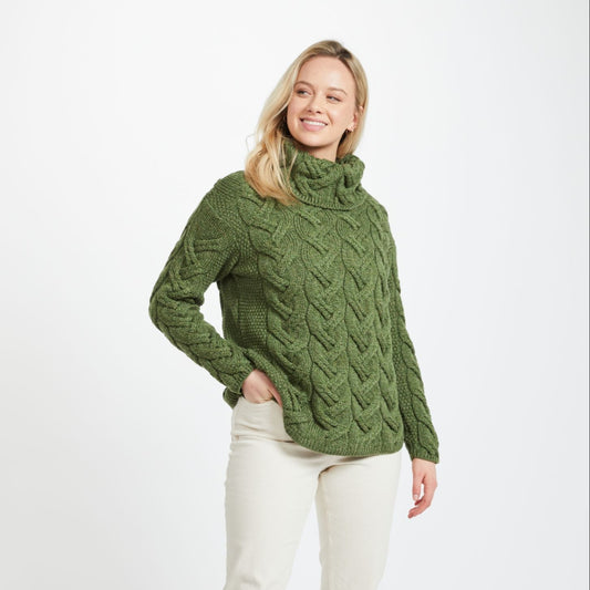 Kinsale Ladies Cable Green Aran Sweater Balancing comfort and warmth with beauty and style, the...