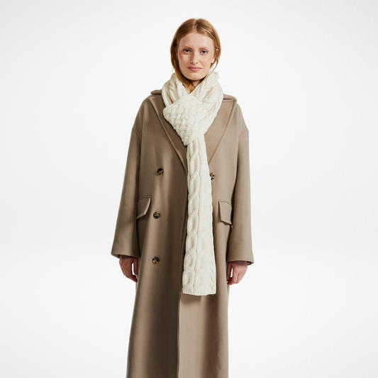 Aran Cable Scarf Elevate your accessory collection with the Aran Cable Scarf, a perfect blend...