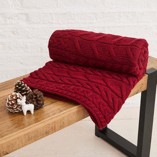 Silver Strand Supersoft Merino Aran Cable Throw - Red